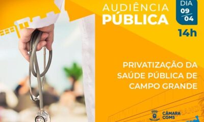 Privatização da Saúde Pública de Campo Grande será tema de Audiência Pública na Câmara Municipal, na quinta-feira, dia 9, às 14 horas. O debate foi proposto...