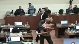 A cena foi flagrada pelas câmeras que transmitiam a sessão. A vereadora Carla Ayres participava da sessão, ontem, e discutia um projeto de lei com Marquinhos...