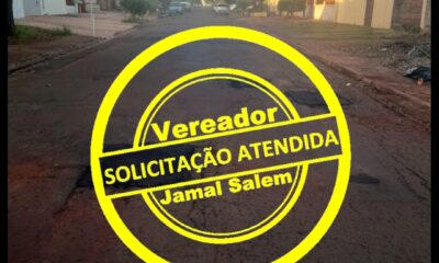 O médico e vereador Dr. Jamal Salem tem mais uma solicitação atendida. Foi realizado o serviço de tapa-buracos, Rua São Clemente. Bairro Santa Luzia Dr. Jamal...