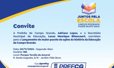 O anúncio será feito pela prefeita de Campo Grande Adriane Lopes e o secretário municipal de Educação Lucas Bitencourt. Data: 20/11/2023 – Segunda-feiraHorário: 18 horasLocal: Parque...