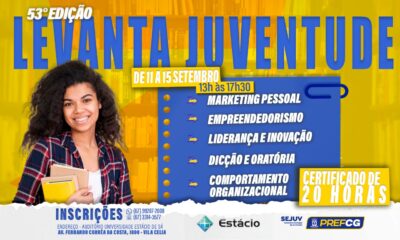 Acontece do dia 11 a 15 de setembro, a 53ª edição do Levanta Juventude. Um Programa de capacitação de jovens, promovido pela Prefeitura de Campo Grande,...