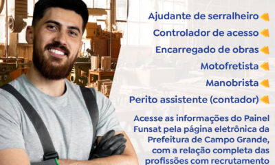 A Fundação Social do Trabalho (Funsat) disponibiliza nesta quarta-feira (8) um total de 1.394 vagas de emprego, abertas por 185 empresas de Campo Grande, abrangendo 145...