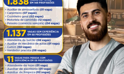A Fundação Social do Trabalho (Funsat) anuncia nesta sexta-feira (29) um total de 1.838 vagas de emprego, distribuídas em 148 profissões e ofertadas por 204 empresas...