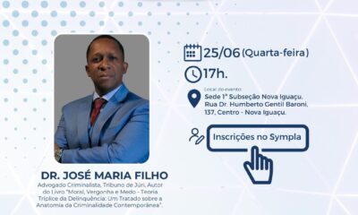 Especialista em Direito Penal, Dr. José Maria Filho apresenta em Nova Iguaçu a teoria que analisa as raízes da criminalidade e propõe soluções eficazes para o...