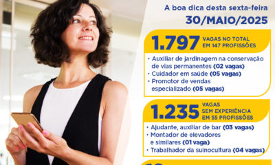 São previstos recrutamentos em 147 profissões, nesta sexta-feira (30), na Agência de Intermediação de Empregos da Funsat (Fundação Social do Trabalho). As chances de contratação possíveis...