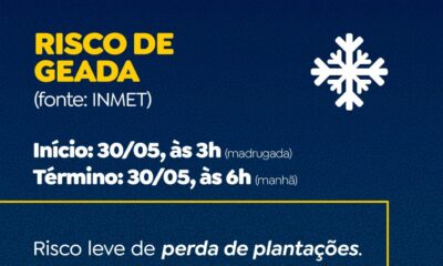 A Coordenadoria Municipal de Proteção e Defesa Civil (Compdec) informa que o Instituto Nacional de Meteorologia (INMET) emitiu Alerta Amarelo para risco de geada na Capital...