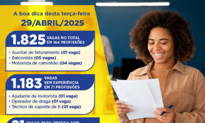 A previsão é de 1.825 oportunidades de emprego na intermediação da Funsat (Fundação Social do Trabalho), desta terça-feira (29), com divulgação de vagas de 176 empresas,...