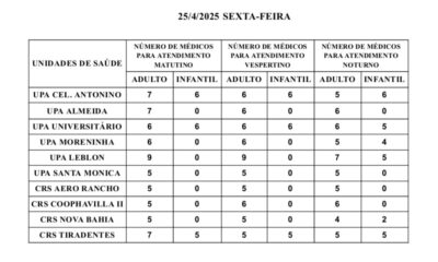 Acontece neste domingo (27) mais um plantão de vacinação realizado pela Secretaria Municipal de Saúde (Sesau), com o objetivo de atualizar a caderneta de vacinação de...
