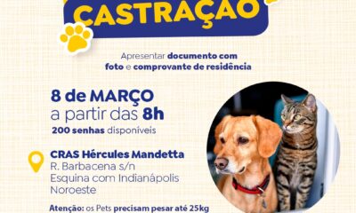 A Prefeitura de Campo Grande promove, no próximo sábado (08), um plantão de castração para cães e gatos no CRAS do bairro Noroeste. A ação, realizada...