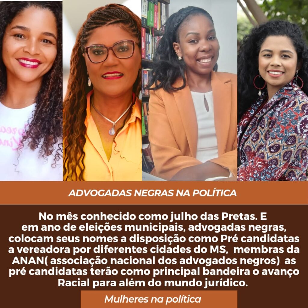 Em ano de eleições municipais e no mês conhecido como julho das Pretas, advogadas negras, descendentes de famílias quilombolas, colocam seus nomes à disposição como pré-candidatas a vereadoras por diferentes cidades de Mato Grosso do Sul.