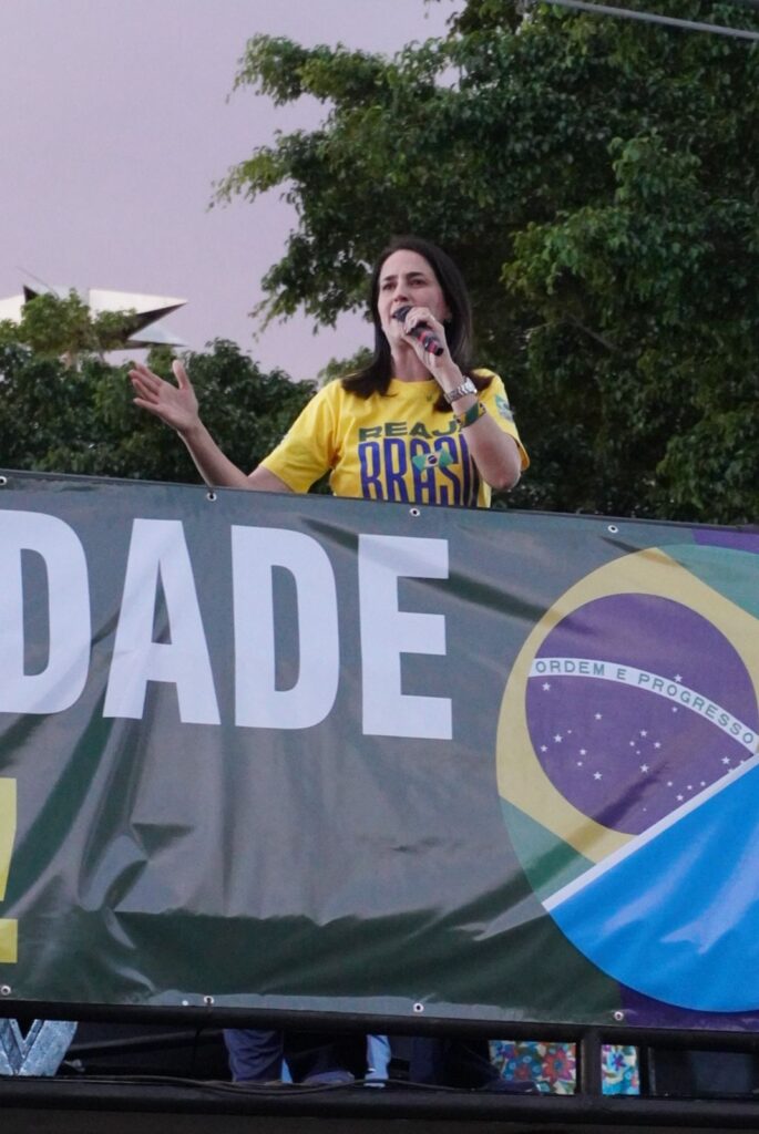 A postulante ao cargo de senadora também aproveitou a oportunidade para criticar o presidente do Senado. “Davi Alcolumbre deixamos aqui a nossa palavra Não vamos recuar, vamos ter mais de 50% do Senado, não vamos entregar nossa nação para essa esquerdalha finalizou.