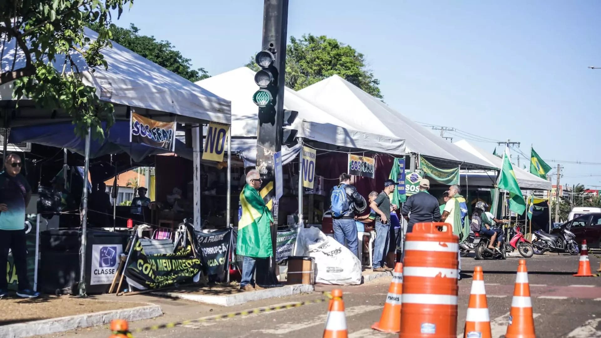 Depois de intensa movimentação durante ato no feriado de Proclamação da República, a quarta-feira (16) segue tranquila e com trânsito liberado no acampamento montado em frente ao Comando Militar do Oeste de Campo Grande. No local, grupo contrário ao resultado das eleições presidenciais entra no décimo sétimo dia de protestos.