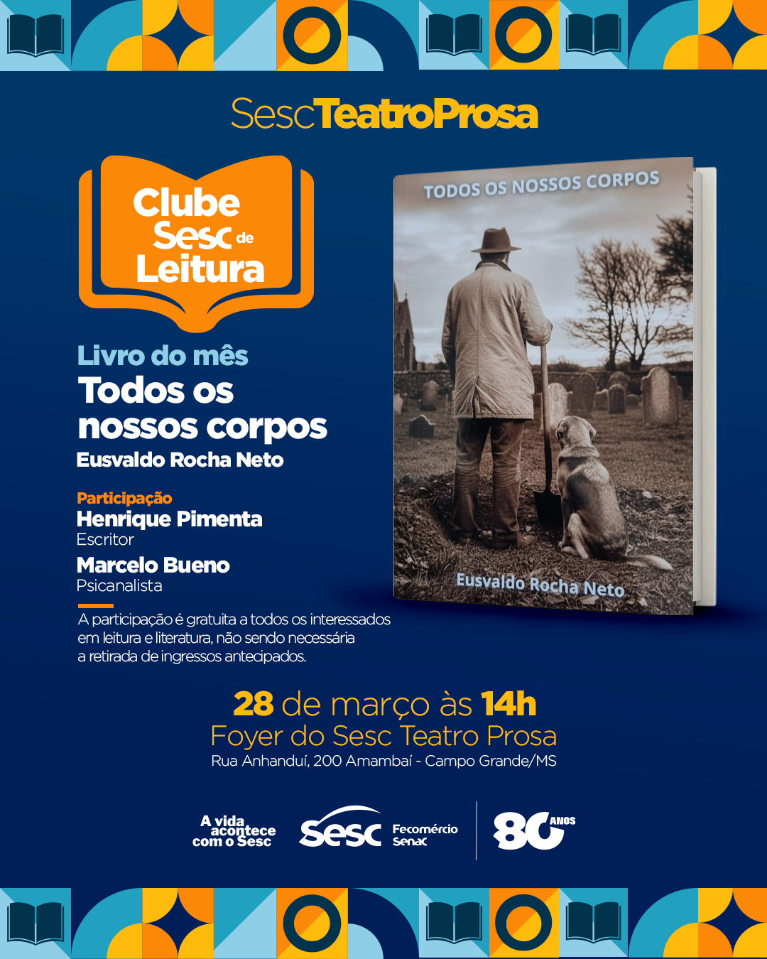 O encontro de abertura terá como foco o livro “Todos os nossos corpos”, do escritor Eusvaldo Rocha Neto, autor radicado em Mato Grosso do Sul. A obra reúne 25 contos que retratam o cotidiano de pessoas comuns, com uma abordagem sensível e marcada pela observação das relações humanas.