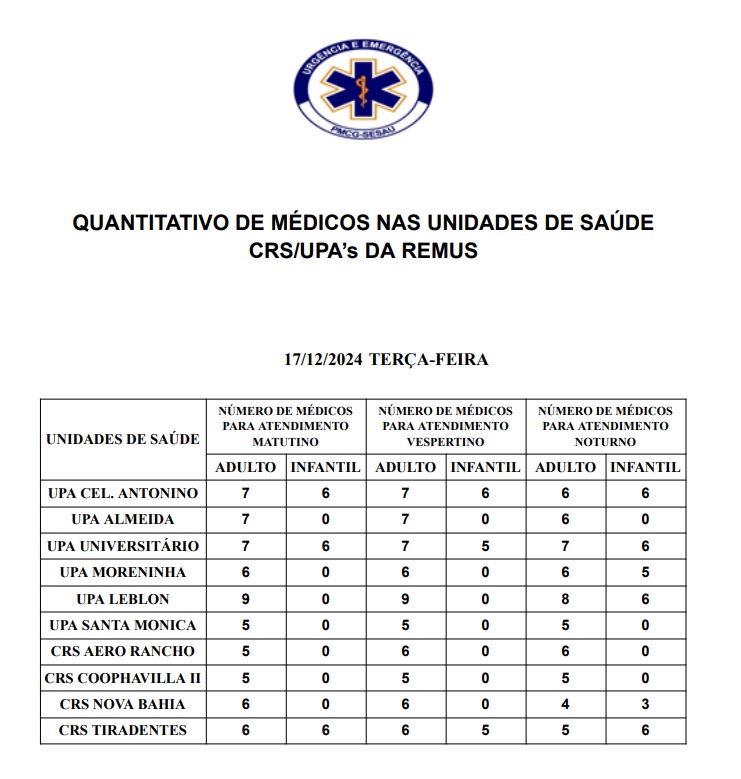 Confira a escala médica desta terça-feira (17)
