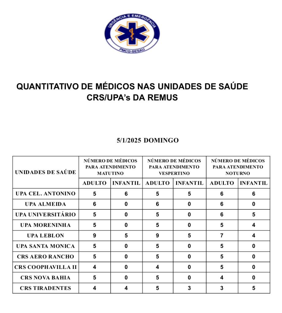 Confira a escala médica nas UPAs e CRSs neste domingo, dia 05 de janeiro de 2025 Sol Santandher/ Cesar ferreira ✅ 1 ano atrás