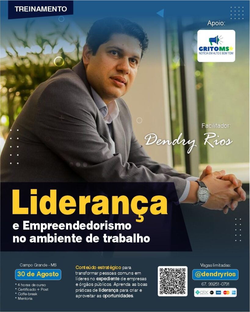 Campo Grande (MS) recebe, no mês de agosto, uma formação estratégica voltada para quem busca aprimorar suas habilidades no ambiente de trabalho e conquistar novas oportunidades no mercado. Trata-se do curso “Liderança e Empreendedorismo no Ambiente de Trabalho”, que será ministrado na capital sul-mato-grossense, com foco tanto no setor privado quanto em órgãos públicos.