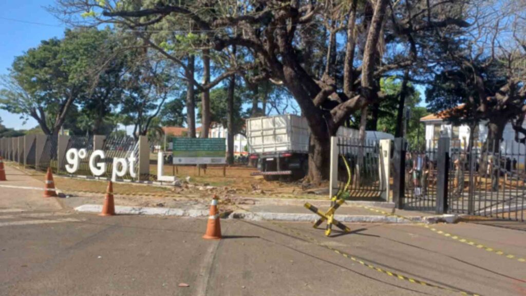Um caminhão desgovernado atingiu vários carros na Duque de Caxias, em Campo Grande, na manhã desta quinta-feira (17), e derrubou o portão do Exército. O motorista estava na contramão.