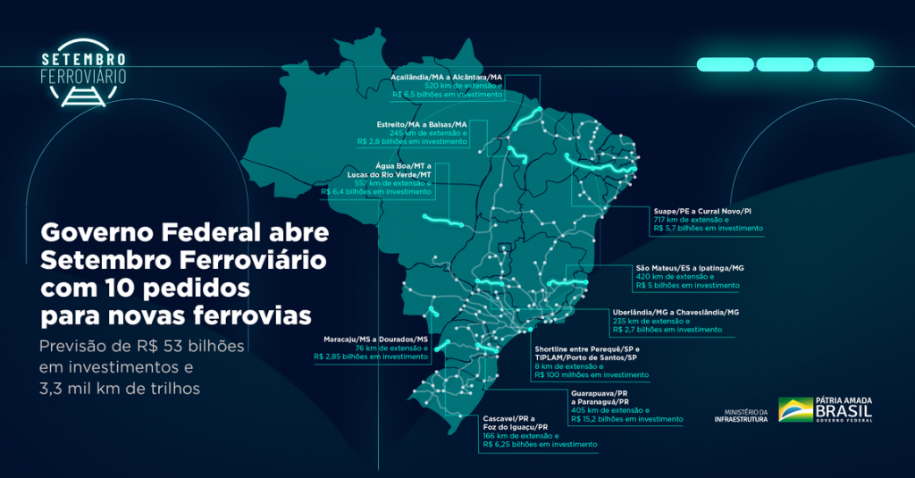 O programa foi lançado abrindo o “Setembro Ferroviário”, concedendo 10 autorizações para a construção de 3,3 mil km de trilhos, com previsão de investimento de R$ 53 bilhões. Em Mato Grosso do Sul foram autorizadas 76 km de ferrovia entre Maracaju e Dourados, ao custo de R$ 2,85 bilhões.