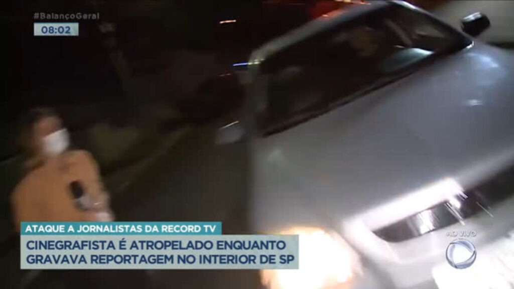 Um motorista acelerou e jogou o carro em cima da equipe da Record TV, que preparava uma reportagem sobre violência doméstica em Campinas (SP). O veículo atingiu o cinegrafista Leandro Marques e, por pouco, não atropelou a repórter Juliana Giachini.