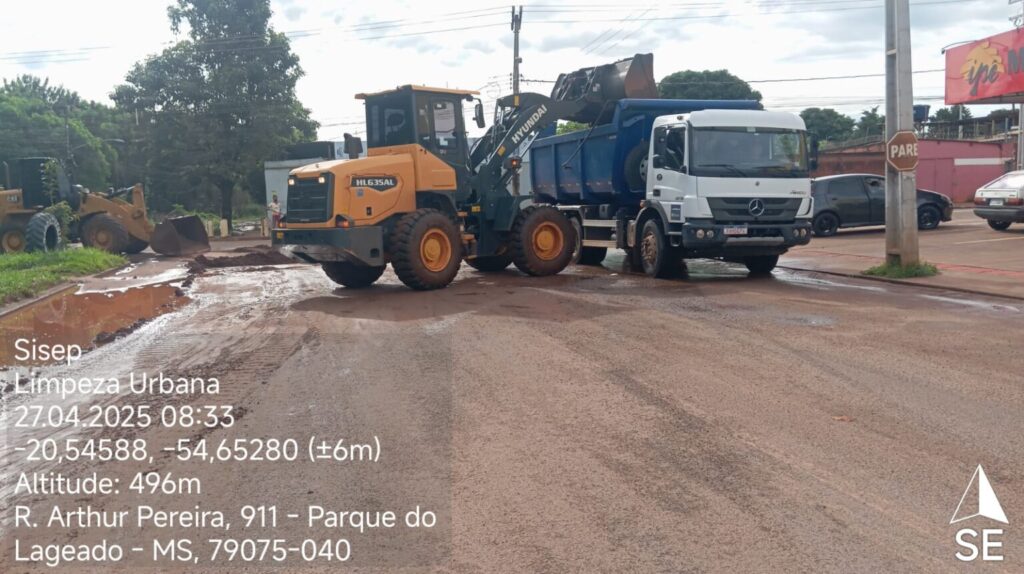 As equipes da Prefeitura de Campo Grande continuam os trabalhos de limpeza pela cidade após as fortes chuvas da última quinta-feira (24). Neste domingo (27), a Secretaria Municipal de Infraestrutura e Serviços Públicos (Sisep) seguiram trabalhando na manutenção da cidade desde as primeiras horas da manhã.