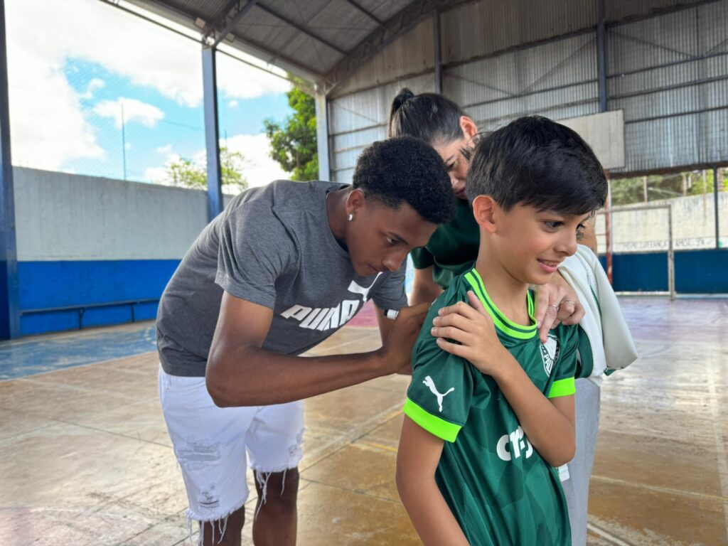 João Pedro Ferreira Souza, tem 10 anos e contou que a tia, a diretora Paula, falou da história do Lucas. “Eu quis conhecê-lo porque sou palmeirense, eu jogo bola, quero seguir carreira igual ao Lucas”.