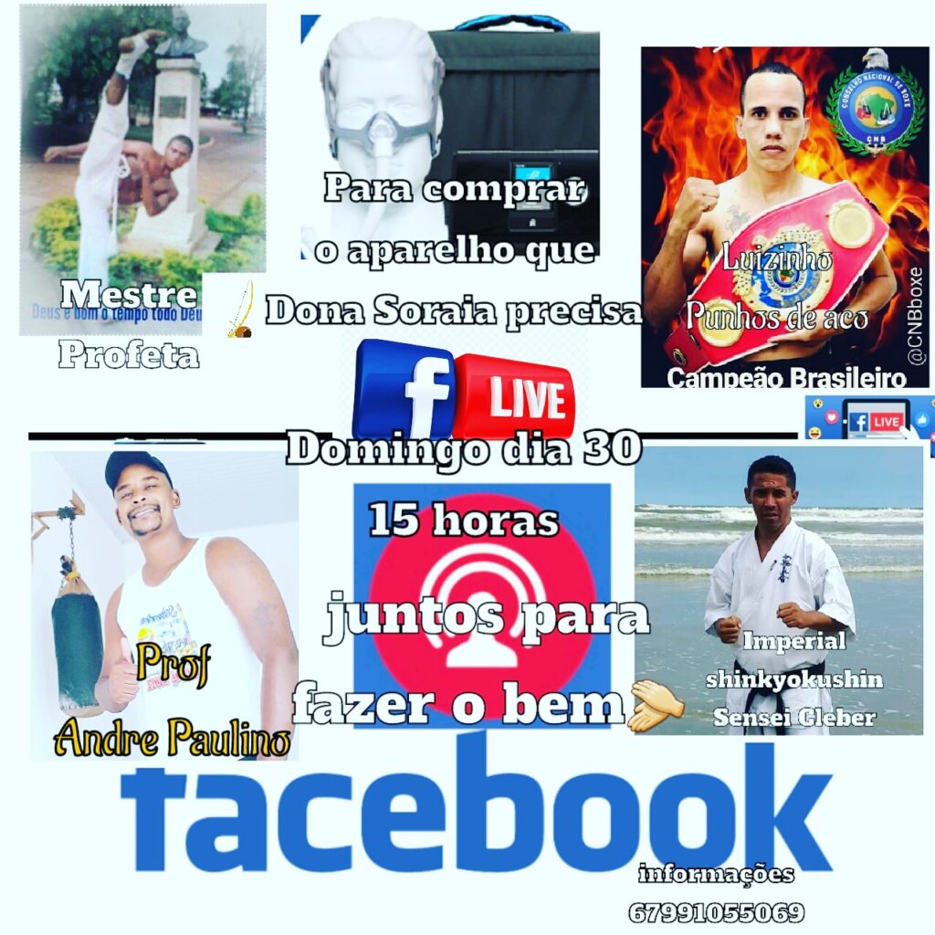 Atletas da capoeira, boxe e karatê vão fazer uma live para ajudar uma amiga que precisa de um aparelho de tratamento cardíaco, entre os atletas está o campeão brasileiro de boxe Luizinho punhos de aço, junto com Kleber Sansei de karatê, e o conhecido Mestre de capoeira o Profeta.