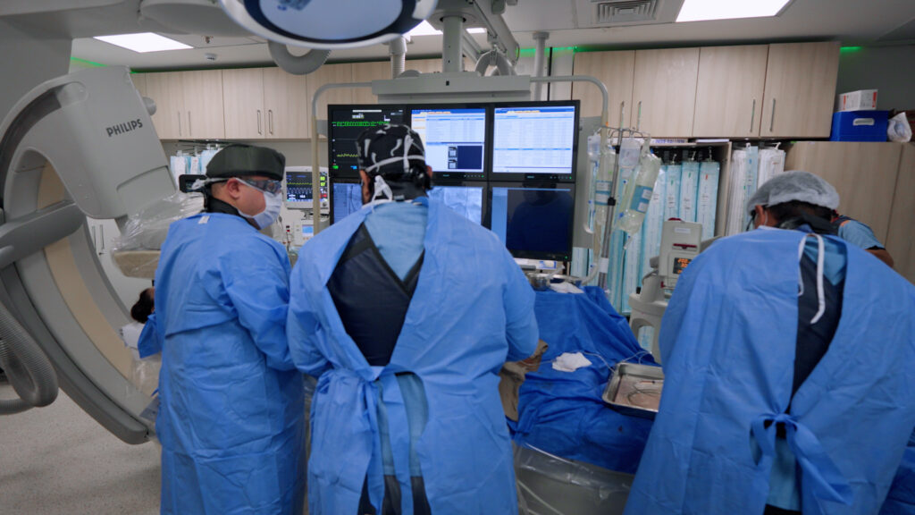 “Fizemos uma cirurgia, minimamente invasiva, da estenose aórtica. Anos atrás, essa cirurgia só era tratada através da cirurgia cardíaca, aquela de peito aberto. Porém, há um ano, a prótese Edwards Sapien Resilia, que é a mesma colocada na cirurgia cirúrgica de peito aberto, foi transformada para ser usada por cateter, pela artéria da perna”. Pedro Beraldo de Andrade, médico hemodinamicista formado na UFMS e morando atualmente em Marília, destaca os benefícios para o paciente que realiza esse procedimento, além da rapidez da recuperação.