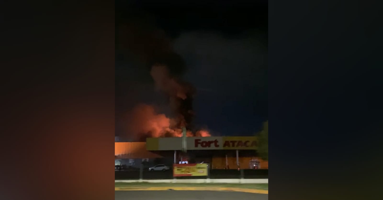 Um incêndio no Fort Atacadista, localizado na Avenida Presidente Vargas, em Campo Grande, mobilizou várias equipes do Corpo de Bombeiros na noite deste sábado (12).