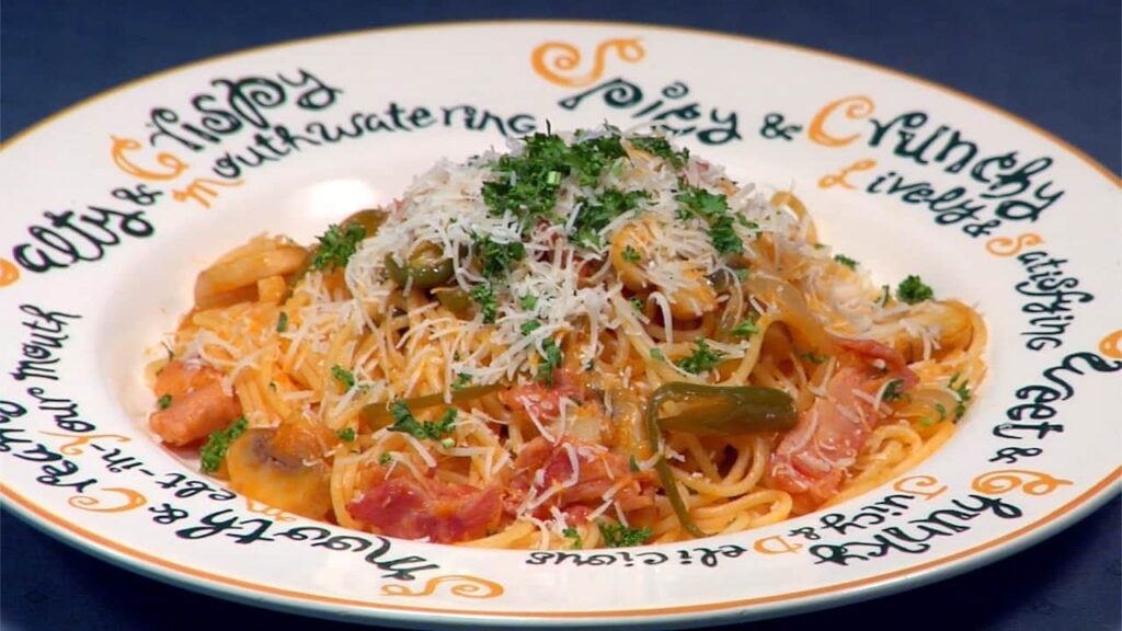 Macarrão com molho napolitano especial: ale e cozinhe a abobrinha por um minuto em agua fervente, depois coloque a abobrinha em agua gelada e deixe mais 1 minuto. Frigideira coloque a abobrinha e refogue rapidamente com um pouco de azeite. Reserve. Em agua fervente com sal cozinhe o macarrão. Na frigideira, coloque azeite, manteiga, cebola, limão siciliano em pó e a linguiça. Deixe refogar por 10 minutos. Acrescente o molho de tomate, pimenta do reino, requeijão, manjericão e sal a gosto. Para finalizar coloque a abobrinha, azeite e azeitona.. Sirva em seguida.
