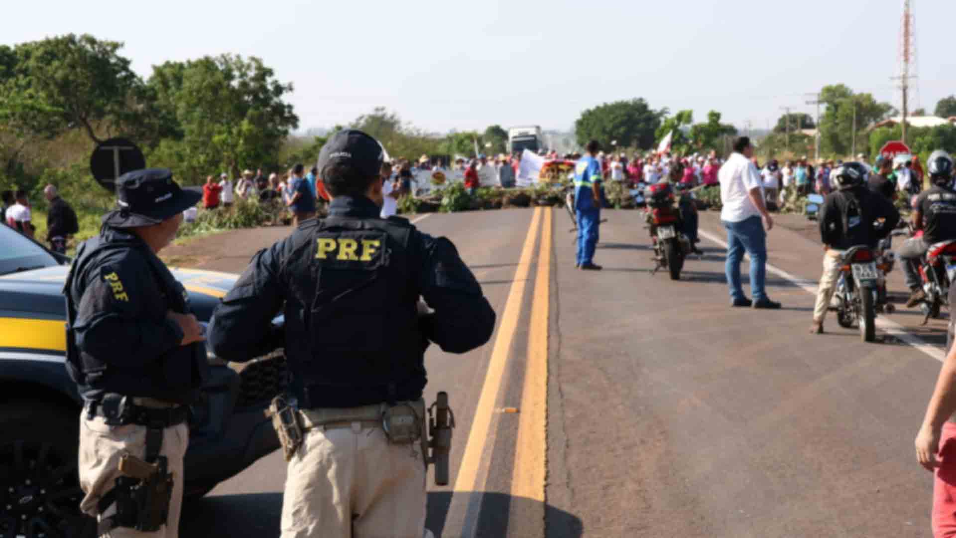Uma manifestação na manhã desta segunda-feira (23) bloqueia totalmente o trecho do km 465 da BR-163, em Campo Grande, próximo à saída para São Paulo.