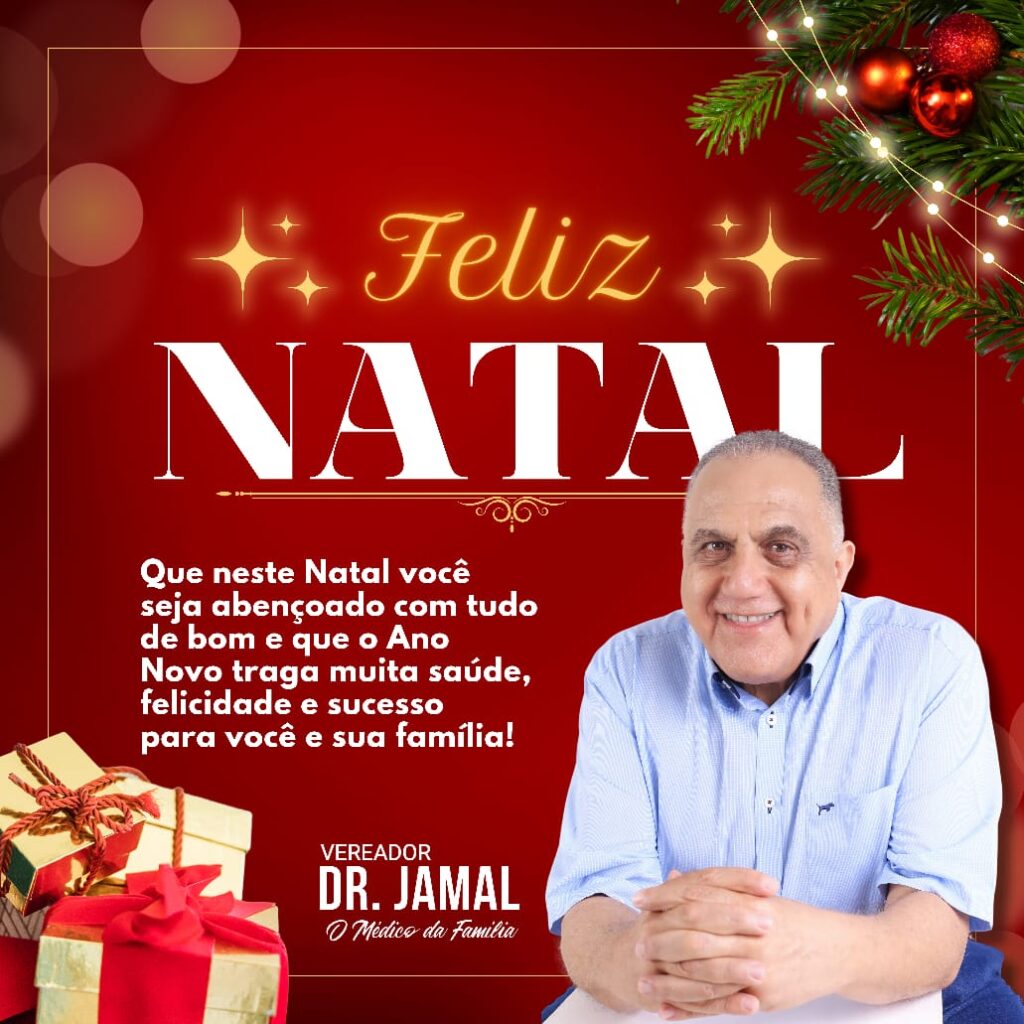 O vereador Dr. Jamal expressa seus sinceros votos de um Feliz Natal a todos os amigos e parceiros. Neste período festivo, ele compartilha a alegria da temporada e deseja que todos desfrutem de momentos especiais ao lado de seus entes queridos.