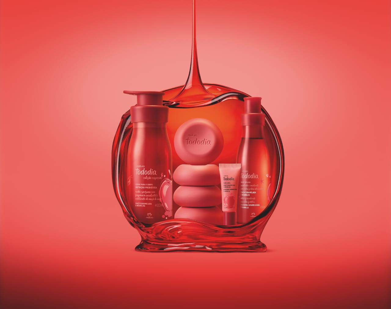 Com fragrância suculenta e envolvente, o novo Tododia Maçã Caramelada e Baunilha transforma a rotina em um momento de bem-estar. Inspirada na maçã do amor, a linha entrega hidratação imediata e duradoura, graças à tecnologia de nutrição prebiótica, que se adapta às necessidades da pele ao longo do dia. Para a executiva, a tendência gourmand ampliou as possibilidades da perfumaria ao integrar ingredientes inspirados na gastronomia em experiências sensoriais completas.