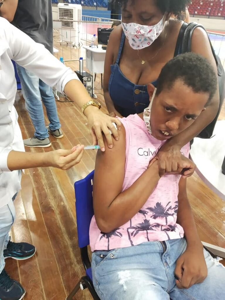 Após esperar menos de uma hora na fila, ela disse que postou uma foto do filho vacinado no Facebook. “Acordei cedo hoje, muito feliz. Falei para ele que íamos tomar banho e depois passear. Ao chegar lá no Guanandizão disse a ele que ia tomar injeção para não ficar dodói. A primeira etapa foi concluída. Antes, meu medo era de chegar algum amigo, algum parente ou até mesmo eu estivesse assintomática e passaria algo para ele”, comentou.