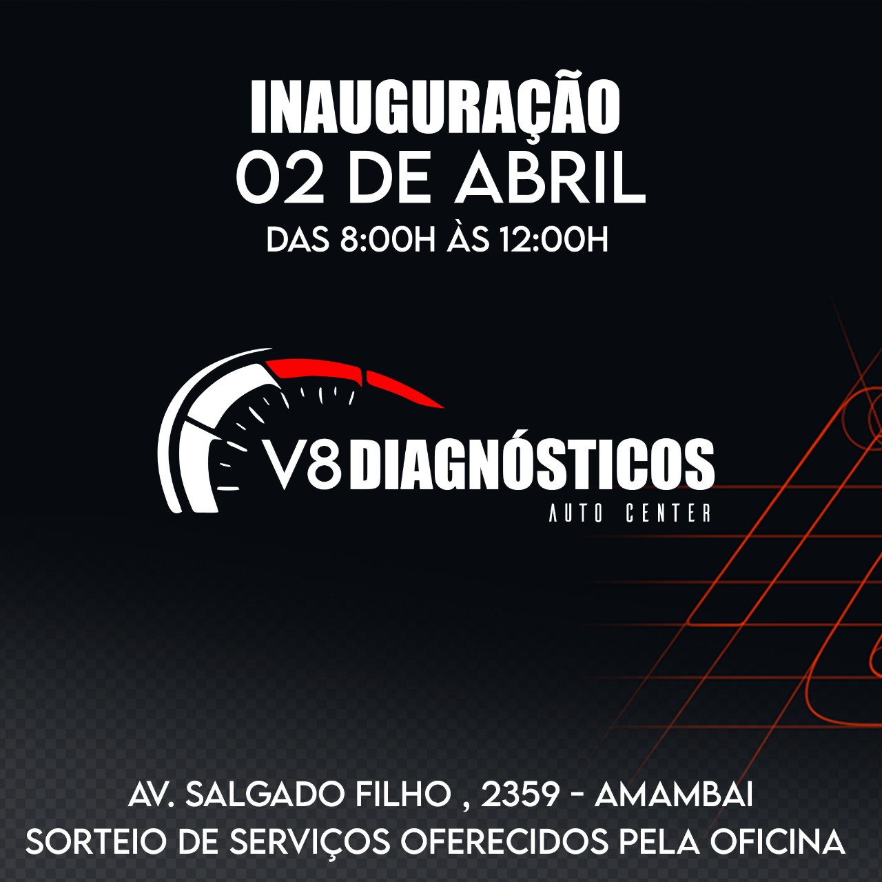 No próximo dia 02 de abril, das 8h às 12h, será inaugurada a V8 Diagnósticos Auto Center.