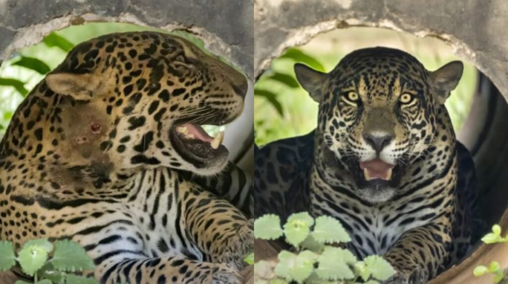 As marcas da luta podem ser vistas de forma nítida no pescoço da famosa onça e os buracos profundos ocasionados pelas mordidas estavam tendo dificuldade para cicatrizar.