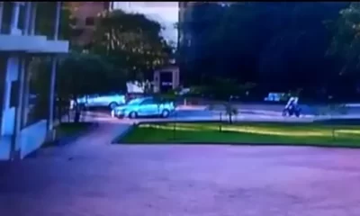 Pistoleiros chegam em um carro durante o atentado contra o prefeito da cidade paraguaia de Pedro Juan Caballero, José Carlos Acevedo, 53, em frente a prefeitura da...