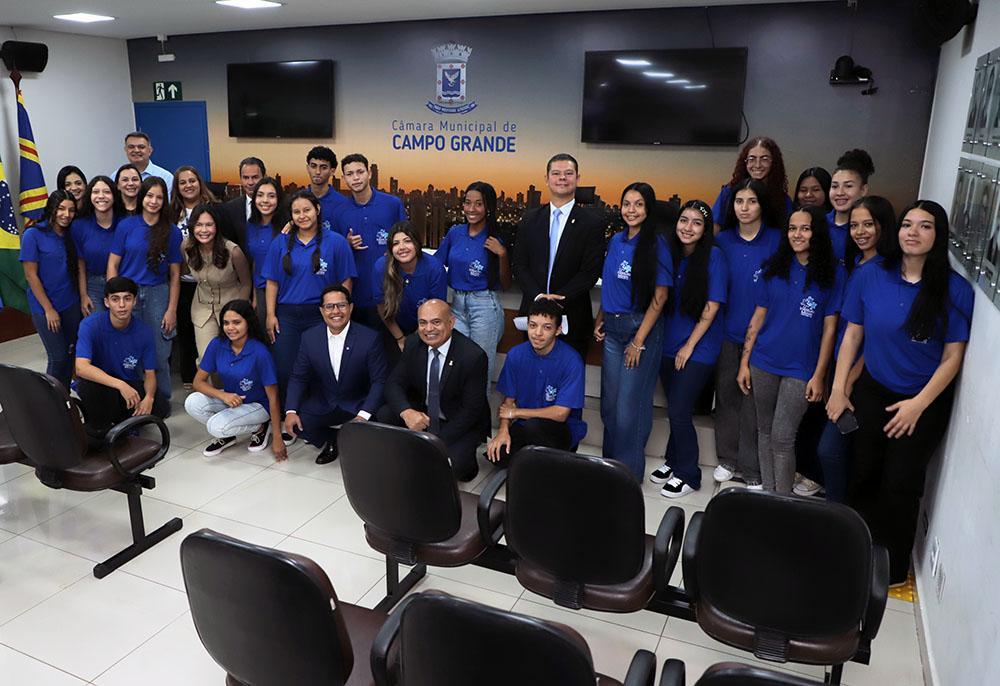 A Câmara Municipal de Campo Grande assinou, nesta terça-feira (10), termo de parceria com o Instituto Mirim, garantindo a inclusão de 18 jovens aprendizes no corpo técnico do Legislativo Municipal. O presidente da Casa de Leis, vereador Epaminondas Neto, o Papy, juntamente com os vereadores Marquinhos Trad, Otávio Trad e Ronilço Guerreiro, recepcionaram os jovens que irão atuar em diversos setores da Câmara, tanto na área administrativa quanto nos gabinetes dos vereadores.