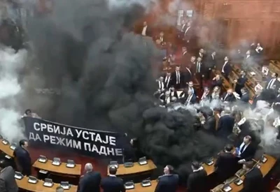 Parlamento da Sérvia tem bombas de fumaça e sinalizadores; três congressistas ficaram feridos