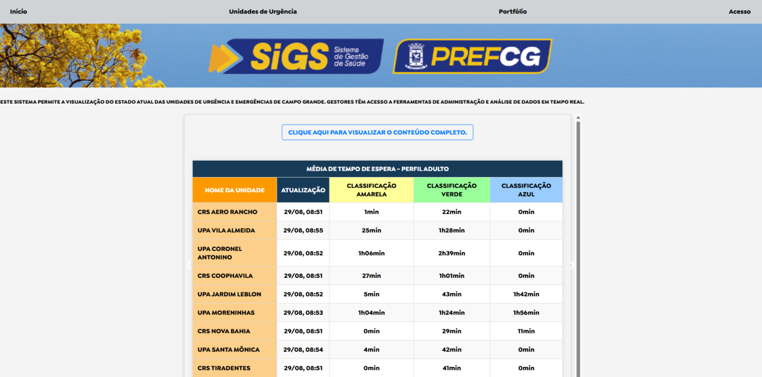 A população de Campo Grande passa a contar com mais transparência nos atendimentos da rede de urgência e emergência. Isso porque já está em funcionamento nas UPAs e CRSs o novo Sistema de Gestão de Saúde (SiGS), ferramenta desenvolvida pela Secretaria Municipal de Saúde (Sesau) para modernizar e unificar o fluxo de informações nas unidades.