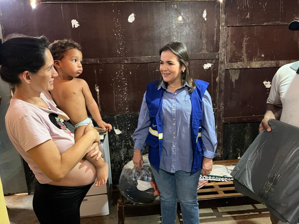 A Prefeita percorreu as ruas da comunidade, conversou com famílias, ouviu sobre as necessidades daquela região e colaborou na distribuição dos materiais. As cestas básicas emergenciais, distribuídas em situações de urgência, foram entregues às famílias pelo Fundo de Apoio à Comunidade (FAC).