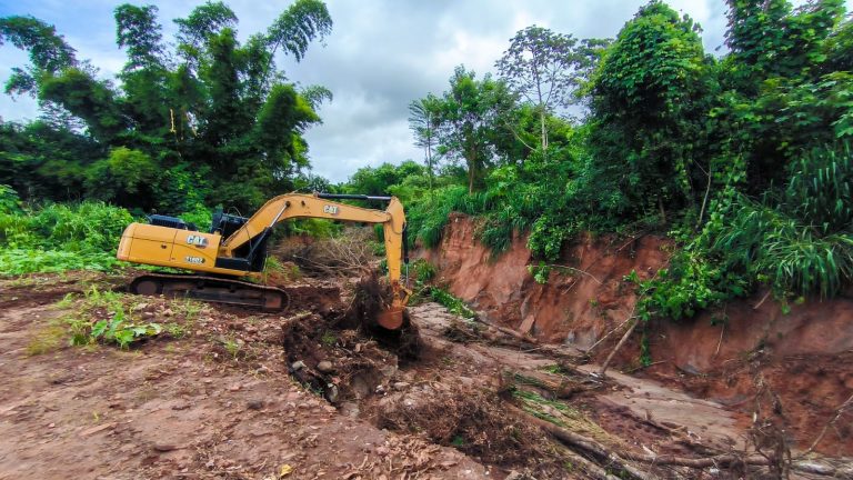 No Bairro Chácara dos Poderes, está sendo realizada a limpeza e desobstrução do local, para colocação do material de nivelamento da voçoroca na estrada SE1. Além da correção das caixas de contenção da bacia na rua de cima, a NE2. A Defesa Civil também está no local para apoio e levantamento.