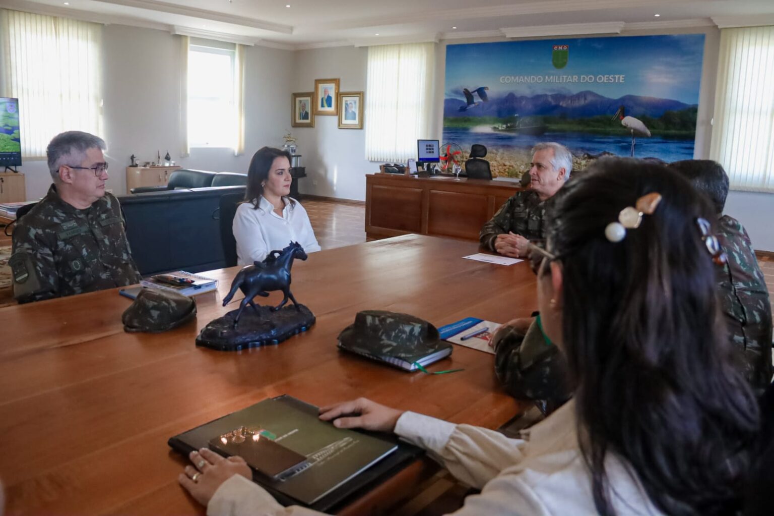 A prefeita de Campo Grande, Adriane Lopes, esteve nesta sexta-feira (11) no Comando Militar do Oeste (CMO) para uma visita institucional marcada pelo clima de despedida do general de Exército Baganha, que deixa o comando da unidade para assumir nova função em Brasília, a partir de agosto.