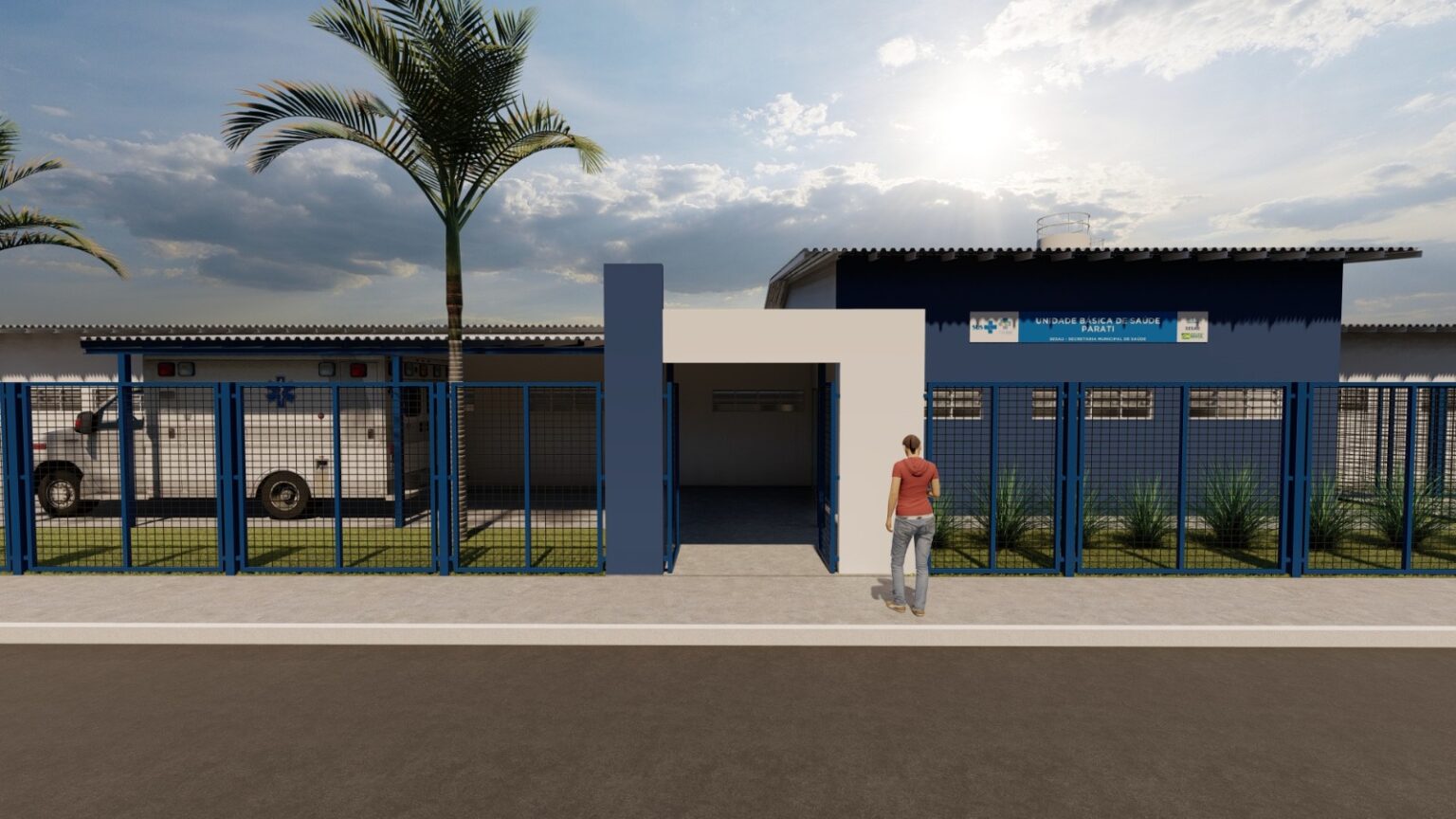 #ParaTodosVerem: Imagem de capa meramente ilustrativa de uma Unidade de Saúde da Família. Depois, a planta da nova unidade do Jardim das Perdizes.