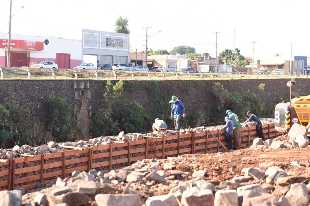 Com equipe própria, a Secretaria Municipal de Infraestrutura e Serviços Públicos (Sisep) iniciou nesta segunda-feira (29) obra emergencial de contenção de erosões no córrego Anhanduí, na Avenida Ernesto Geisel, no sentido Avenida Manoel da Costa Lima/Centro. O trabalho começou próximo ao ginásio poliesportivo Guanandizão.