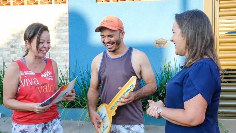 Na quarta-feira (23), a manicure Ângela Quitéria, de 44 anos, e o esposo Daniel de Oliveira Rodrigues, 45, que trabalha com serviços gerais, foram os primeiros a ganhar a documentação, que chegou até eles pelas mãos da prefeita Adriane Lopes, que fez questão de ir até o Bairro Universitário comunicar que o casal já pode chamar de sua a casa própria, já que todas as prestações até o final do contrato estão oficialmente quitadas.