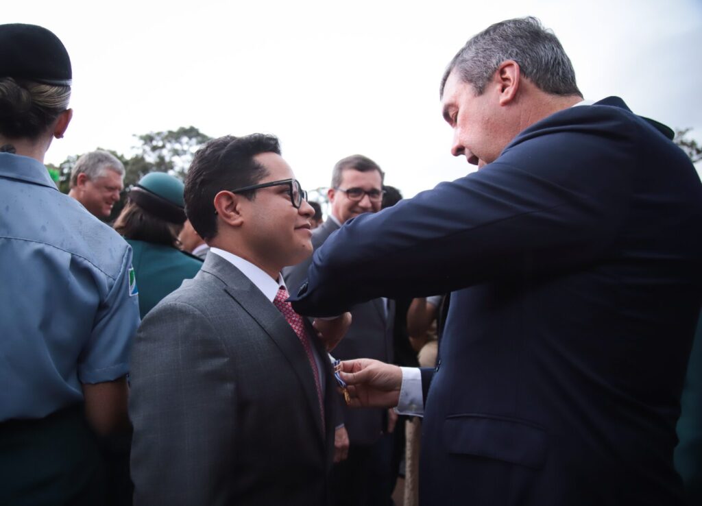 O presidente Papy agradeceu o reconhecimento e afirmou que recebe a honraria estendendo a homenagem a todos os vereadores da Câmara Municipal de Campo Grande. “Muito feliz. É uma honra. A Medalha Tiradentes é a mais importante da Polícia Militar de Mato Grosso do Sul. E eu me sinto homenageado representando todos os colegas vereadores e vereadoras de Campo Grande. É também uma homenagem à Câmara pelo reconhecimento do trabalho do Legislativo Municipal. Essa medalha é para todos nós”, celebrou Papy, que recebeu a Medalha Tiradentes das mãos do governador Eduardo Riedel.