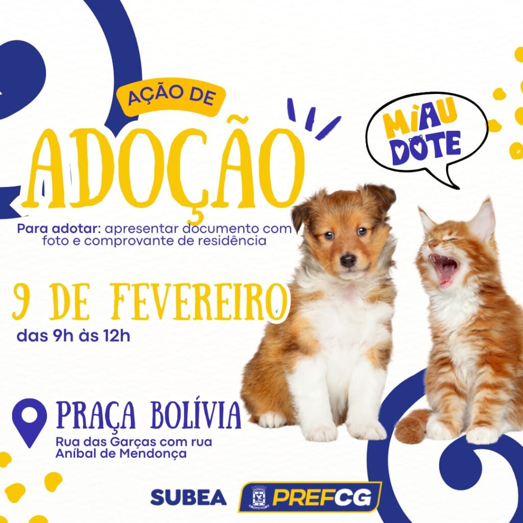 A ação ocorrerá no dia 09/02 (domingo), das 9h às 12h, e terá aproximadamente 70 filhotes entre cães e gatos. Os interessados em adotar um animal devem apresentar documento de identidade com foto, comprovante de residência e ser maior de 18 anos. Importante levar guia, coleira ou caixa de transporte.