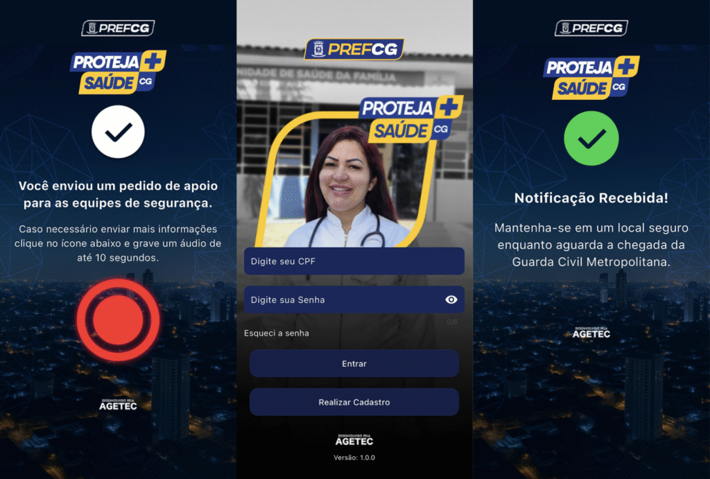 A Prefeitura de Campo Grande está lançando o Proteja+CG, uma família de aplicativos criada para agir rápido e salvar vidas em situações de risco. Desenvolvido pela Agência de Tecnologia e Inovação (Agetec), em parceria com outras secretarias municipais, o sistema reúne monitoramento em tempo real, botão de emergência e resposta imediata para proteger profissionais da Saúde, Educação e também em defesa das mulheres.
