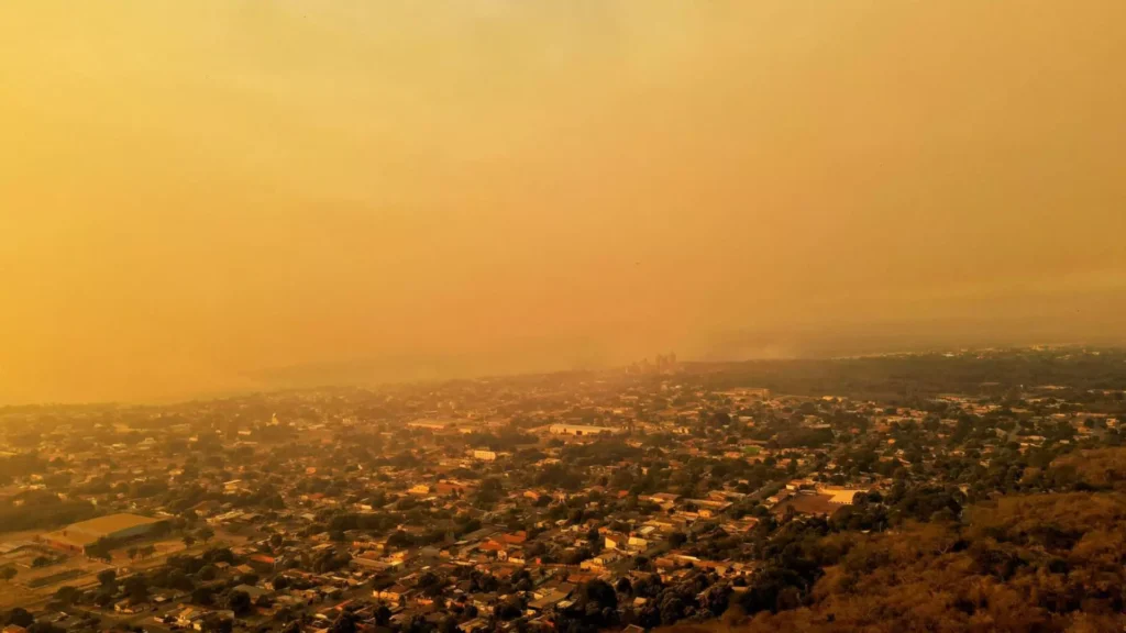 A fumaça que invade Corumbá desde o início dos incêndios no Pantanal virou rotina para os moradores, que precisaram se adaptar para sofrer menos danos neste período de clima extremamente seco agravado pelas queimadas.
