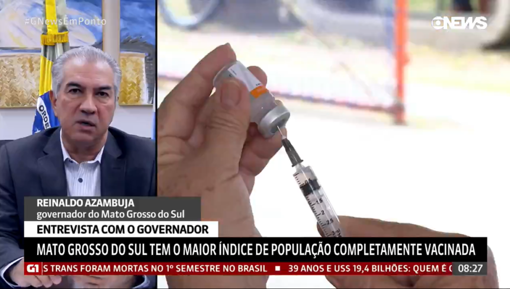 O governador do Mato Grosso do Sul, Reinaldo Azambuja, fala sobre a vacinação contra a Covid no estado, que tem o melhor índice de população completamente imunizada. Segundo Azambuja, o diálogo com os municípios foi fundamental:
